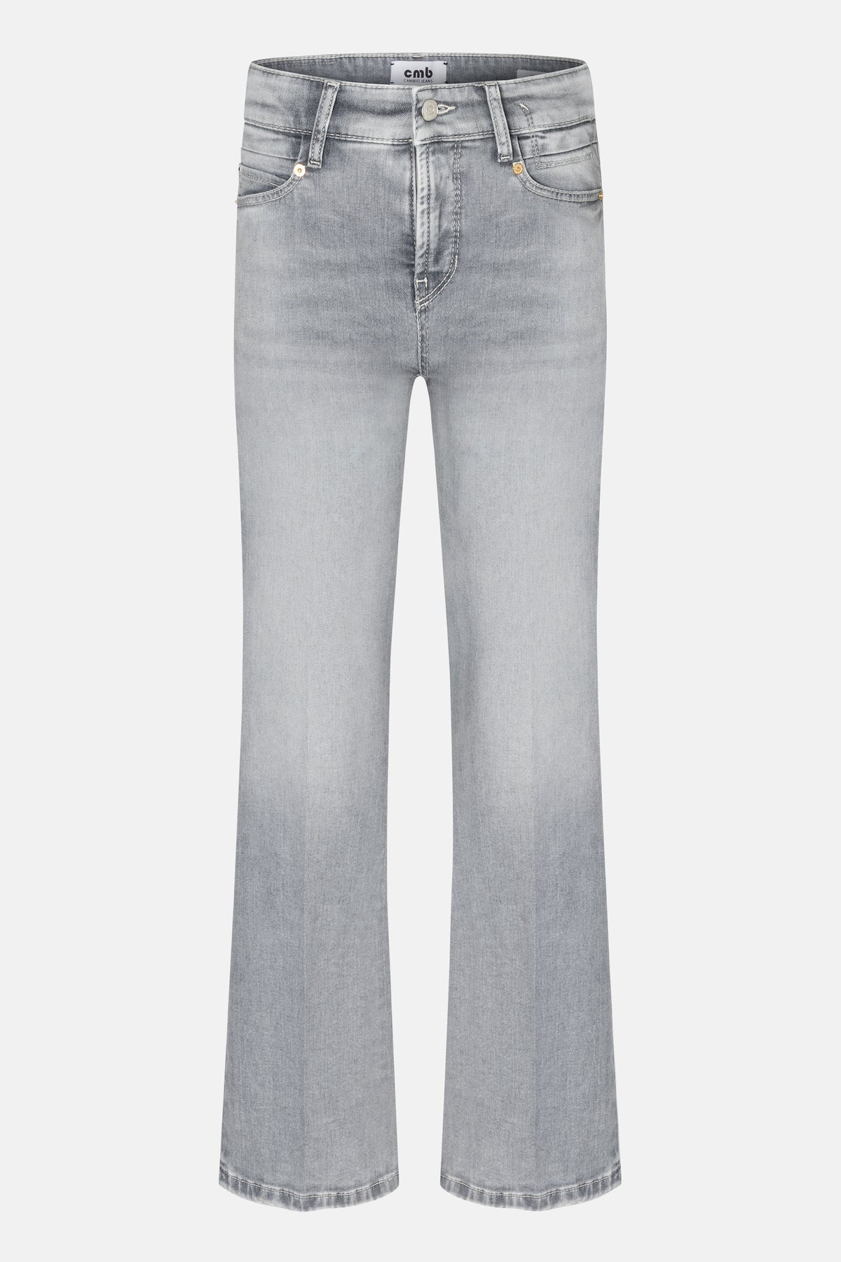 PARIS FLARED flared jeans in full length. These jeans feature a flared silhouette that gently widens from the knee, creating a modern, clean line. The light gray wash gives them a fresh, summery feel, while the classic 5-pocket design completes the high-quality look. The super-stretch denim ensures exceptional comfort, a perfect fit, and optimal freedom of movement – the jeans retain their shape even after extended wear.