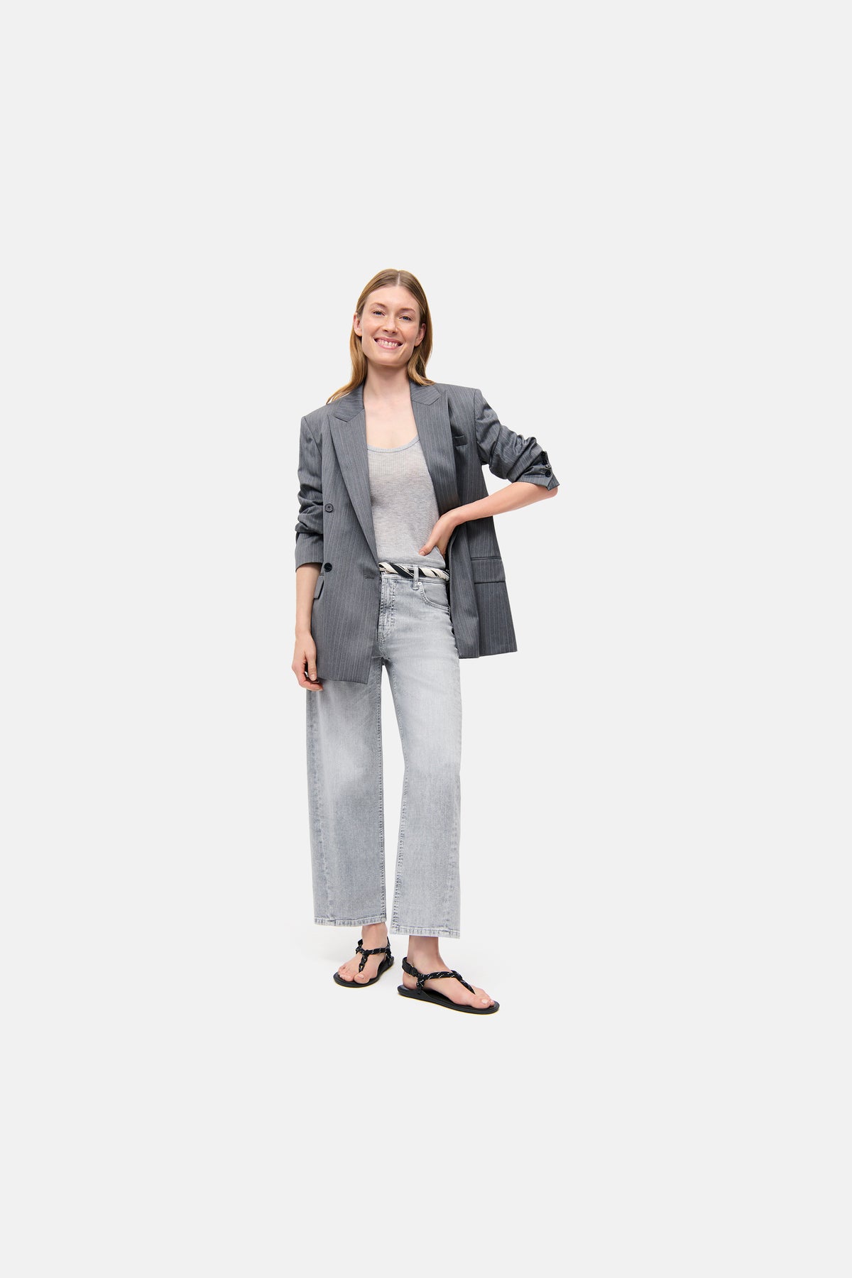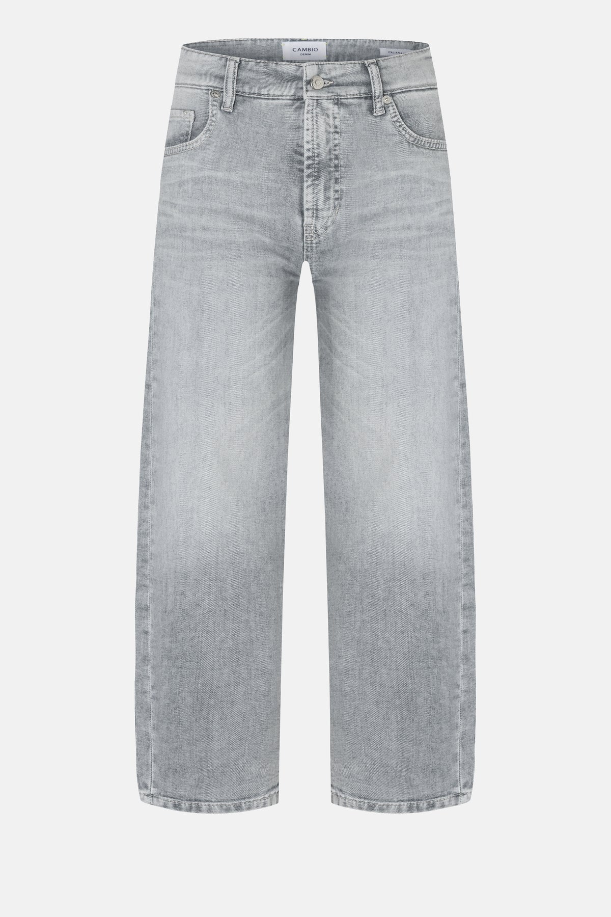 O-Shape Jeans ORIA in Cropped. Die Jeans überzeugt mit ihrer typischen O-Shape-Silhouette – die voluminöse Rundung umspielt die Figur, während die schmal zulaufende, verkürzte Form für eine ausgewogene Balance zwischen Weite und Definition sorgt. Die graue Waschung erhält durch die crossige Köperstruktur eine moderne Vintage-Optik, die kontrastreiche Details wie Scraping, Destroy-Effekte oder innovative Laser-Details stilvoll unterstreicht. Seitlich eingesetzte Panels betonen zusätzlich die Form, während der 5-Pocket-Schnitt für klassische Jeans-Optik sorgt. Der Stretchanteil garantiert hohen Komfort und optimale Bewegungsfreiheit.