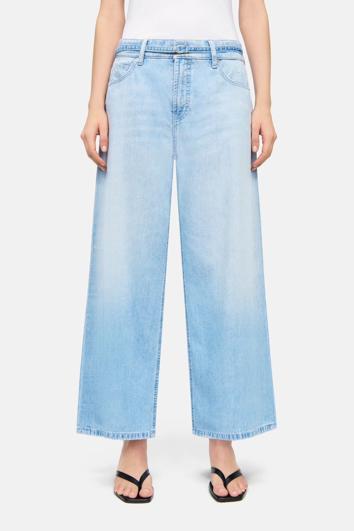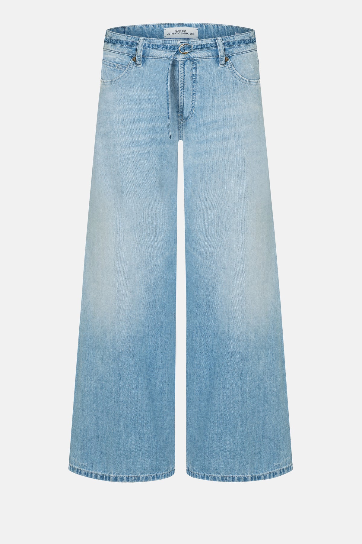 Palazzo Jeans PALAZZO CROPPED in verkürzter Länge. Für einen entspannt lässigen Look haben wir die Jeans am Model eine Nummer größer gewählt. So rutscht die PALAZZO CROPPED auf die Hüfte und hat eine volle Länge. Bei passender Größe hat die Jeans eine hohe Leibhöhe und eine verkürzte Länge (30 INCH). Die Jeans überzeugt mit einer modernen Silhouette im eleganten Palazzo-Style – das weit geschnittene Bein verleiht dem Modell eine luftige, fließende Ausstrahlung. Die helle blaue Waschung unterstreicht den sommerlich leichten Charakter und sorgt für einen entspannten Look. Ein integrierter, schmaler Gürtel setzt einen stilvollen Akzent und rundet das Design harmonisch ab. Der leichte Denim aus zertifizierter Baumwolle fühlt sich angenehm luftig an und bietet hohen Tragekomfort an warmen Tagen. Erhältlich in Blau und Grau.